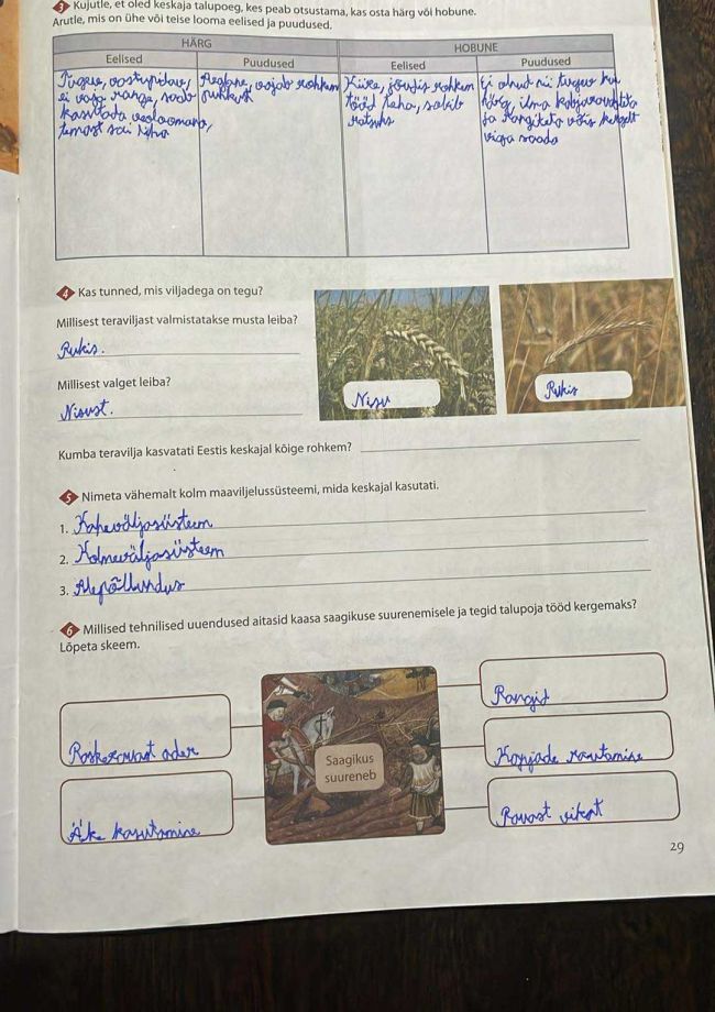 Õppisime Opiq.ee keskkonnas teemat „Põllumajanduse areng“. Rääkisime sellest, et varakeskajal oli peamine karjakasvatus. Kasvatati veiseid, sigu, lambaid ja kitsi. Loomad olid väikesed ja andsid vähe liha ning piima. Rahvaarvu kasvuga hariti karjamaad põlluks, kuid pärast Musta Surma muutusid need taas karjamaadeks. Siis kasvas eriti lambakasvatus.