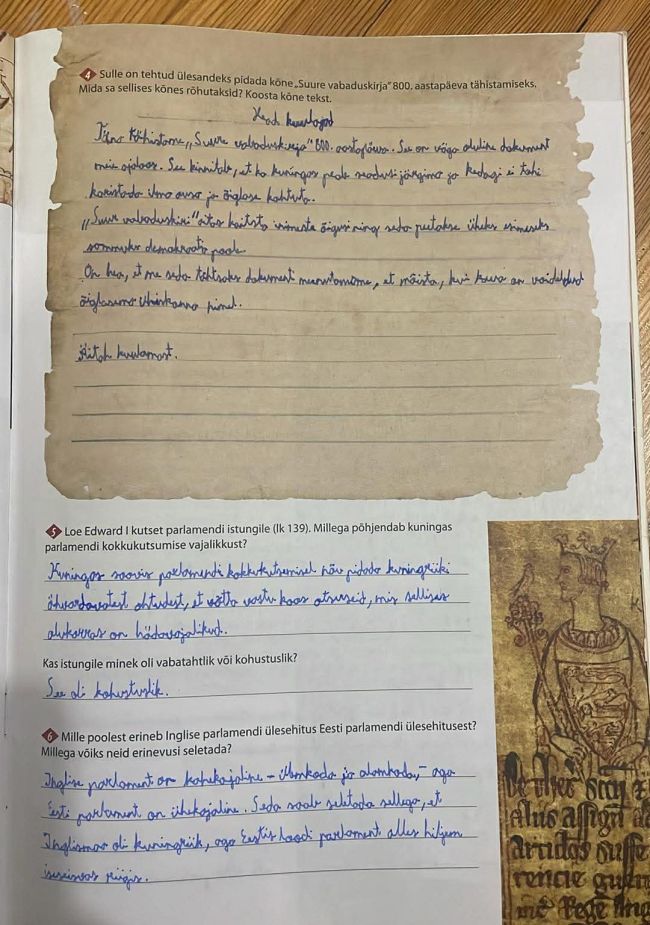 Tutvusime õpiku teemaga „Inglismaa“. Robin sai teada, et 1066. aastal vallutas Normandia hertsog William Inglismaa ja sellest sai Inglismaa-Normandia ühisriik. Normannide ülemvõimu all said tähtsad ametid ja suured maa-alad uute isandate kätte ning riigi juhtimine muutus tugevamaks. Inglismaa poliitika seotus Prantsusmaaga kasvas, kuni paljud mandri valdused hiljem kaotati. Kuningate ja aadlike pinged viisid selleni, et 1215. aastal nõuti kuningalt „Suure vabaduskirja“ allkirjastamist, mis piiras kuningavõimu ja kinnitas alamate õigusi. Hiljem kujunes Inglismaal parlament, kus otsuste tegemisel said kaasa rääkida nii ülikud kui ka linnade ja maapiirkondade esindajad – see oli oluline samm demokraatia suunas.