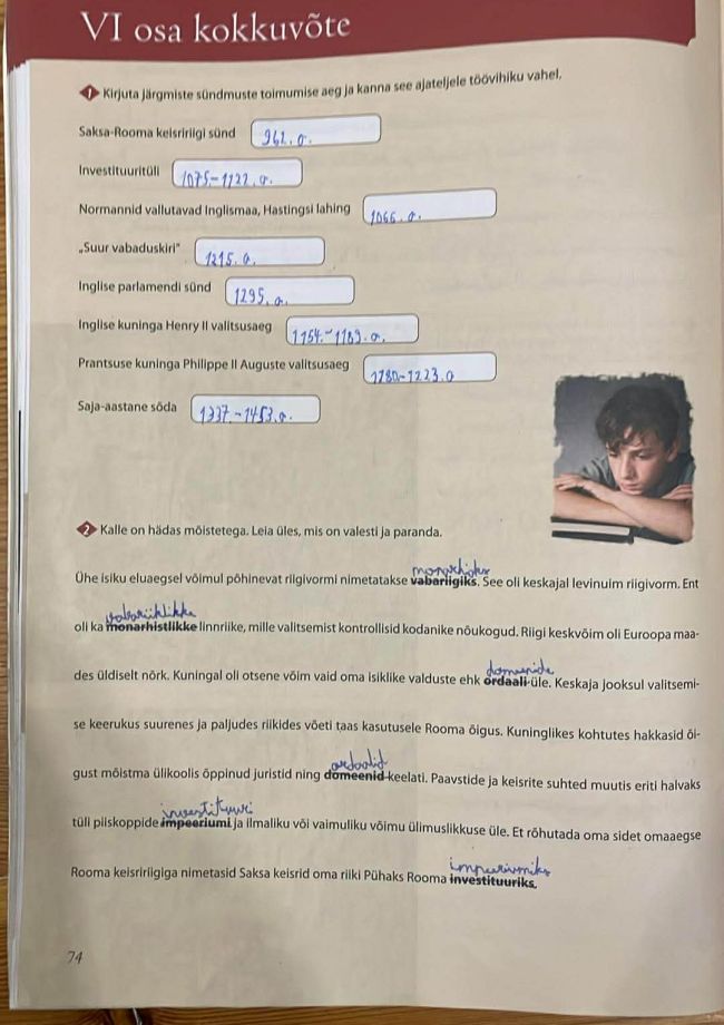 VI osa kokkuvõte- Iseseisvalt tv ülessannete lahendamine. Töövihiku ülesandes ristsõnas olid töövihiku tegijal viga. Üks õige vastus ei mahtunud ära. Hinne 5