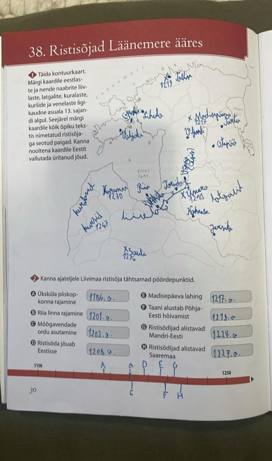 Tutvusime õpiku teemaga „Ristisõjad Läänemere ääres“. Robin sai teada, et ristisõjad tõid 12.–13. sajandil Läänemere idakaldale suured muutused ning olid seotud Eesti ja Läti liitmisega kristliku Euroopa mõjusfääri. Misjonitöö algas liivlaste aladel piiskop Meinhardi tegevusega, kuid kasvas kiiresti sõjaliseks vallutuseks, eriti piiskop Alberti ajal, mil rajati Riia ja algas ulatuslik ristisõjategevus. Ristisõdijad kasutasid kohalike hõimude vastasseise, sõlmisid ajutisi liite ja rajasid püsiva võimu kindlustamiseks Mõõgavendade ordu. Eestis puhkes pikk ja verine muistne vabadusvõitlus, kus eestlased osutasid visa vastupanu, kuid jäid lõpuks alla sakslastele ja nende liitlastele, sealhulgas taanlastele. Aja jooksul kujunesid Läänemere ääres välja uued võimuvahekorrad, Saksa ordu tugevnes, Taani sai Põhja-Eesti ning ristisõjad jätkusid veel kaua Kuramaal, Preisimaal ja Leedus.