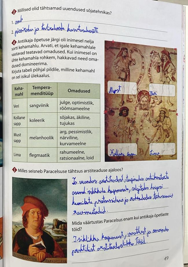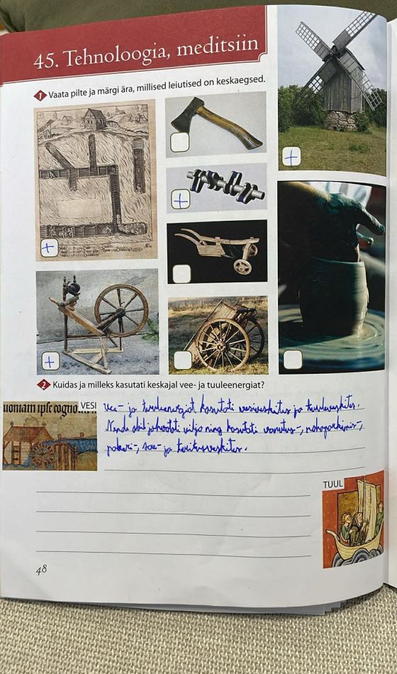 Tutvusime õpiku teemaga „Tehnoloogia, meditsiin“. Robin sai teada, et kuigi keskajal suhtuti uuendustesse sageli umbusuga, sündis sel ajastul siiski palju olulisi tehnilisi saavutusi, nagu veski laialdane kasutamine, uued põllutööriistad, arenenum metallurgia ning sõjatehnika uuendused, sealhulgas amb ja tulirelvad. Väga tähtsaks muutusid mehaaniline kell ja taskukell, mis muutsid ajamõõtmise täpsemaks ning mõjutasid majanduse ja ühiskonna arengut. Suure pöörde tõi kaasa Gutenbergi trükikunsti leiutamine, mis tegi raamatud odavamaks ja teadmised kättesaadavaks paljudele. Meditsiinis tugines õpetus algul antiikautoritele ja kehamahlade teooriale, kuid Paracelsus tõi kaasa uuenduslikuma lähenemise, rõhutades kogemust, keemilisi protsesse ja mõõdukat ravi, mis pani aluse kaasaegsema arstiteaduse arengule.
