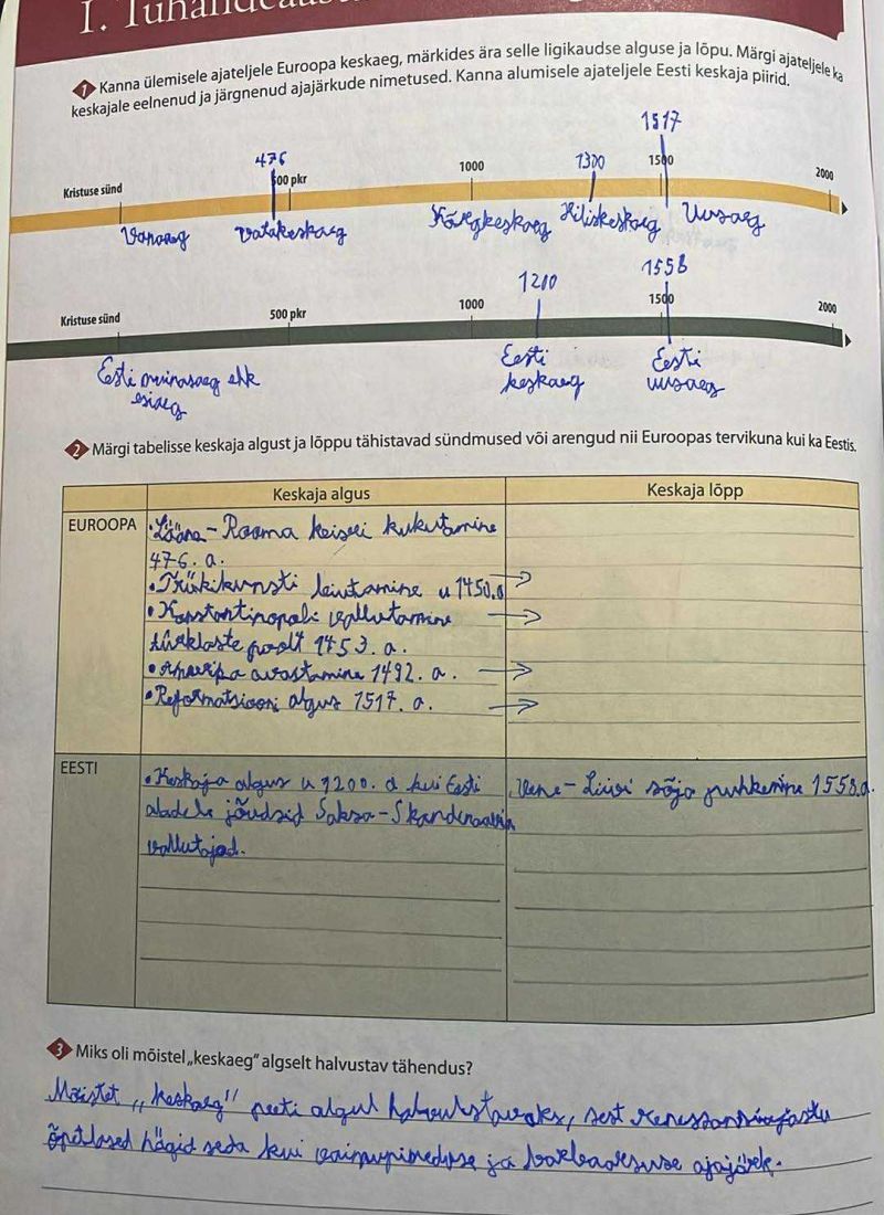 Õppisime teema läbi Opiq.ee keskkonnas, kus Robin lahendas ka vastavad harjutused. Ta sai teada, millal algas ja millal lõppes keskaeg Euroopas, miks algas keskaeg Eestis hiljem kui näiteks Prantsusmaal ning mille poolest on keskaeg Eesti ajaloos oluline.