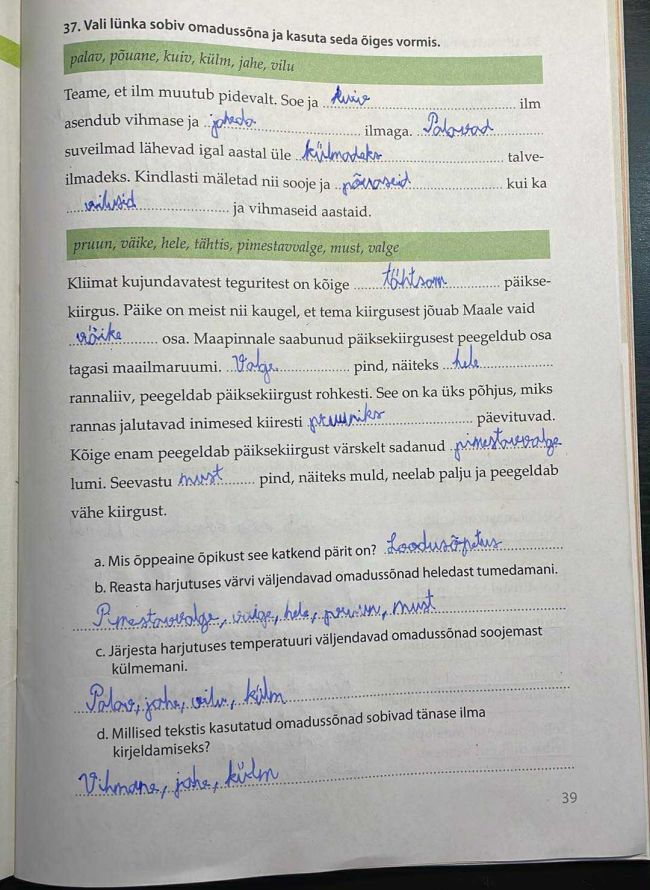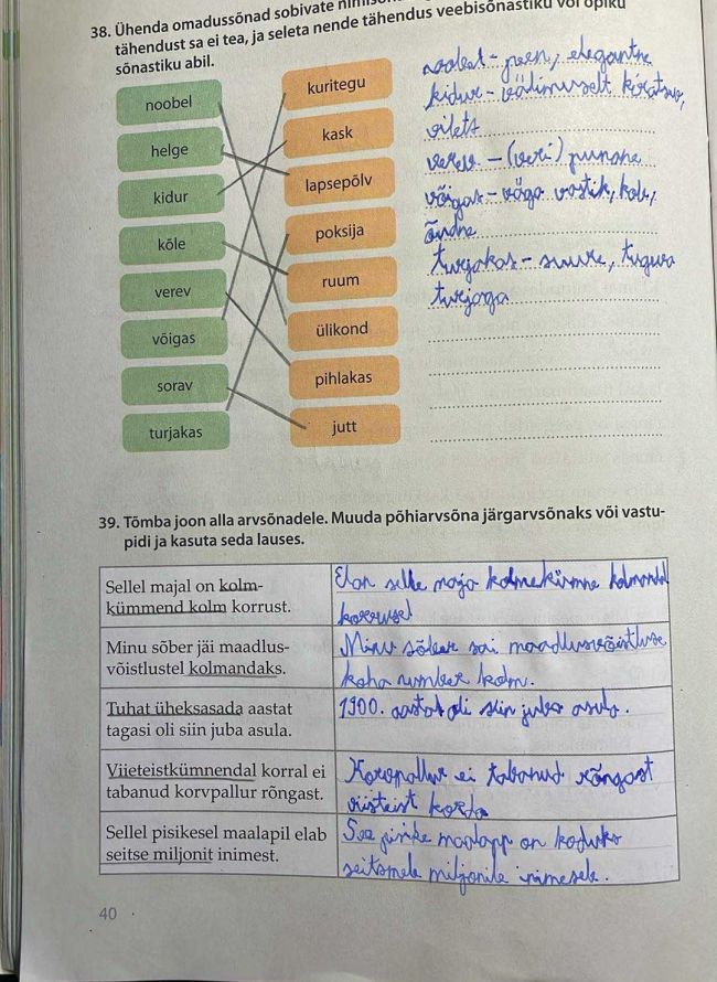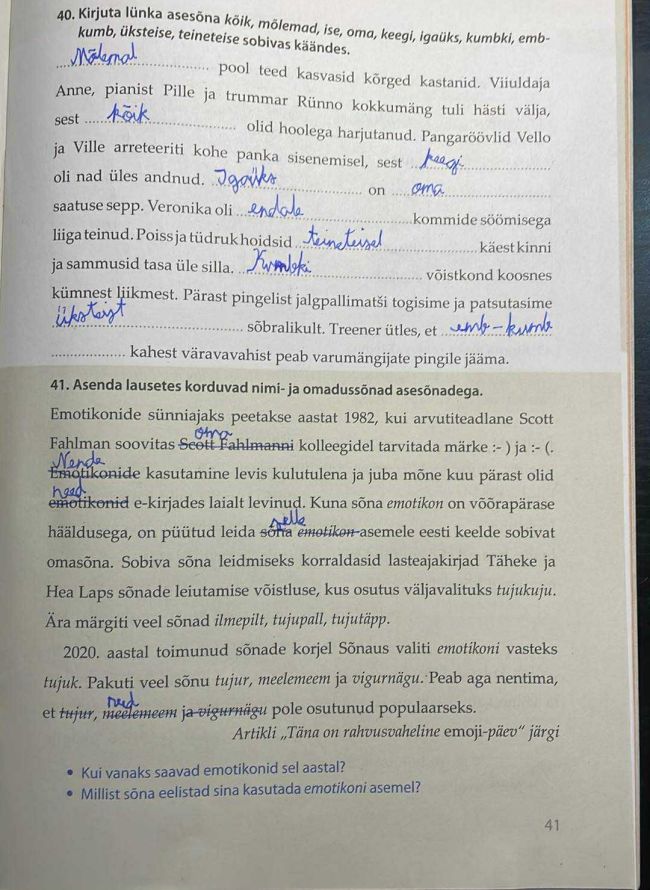 Õppisime ka, et mõni sõna võib esineda mitmes sõnaliigis, näiteks sõna haige võib olla nii nimisõna (haige tuli arstile) kui ka omadussõna (haige jalg valutab). See tektias Robinis segadust. Tuleb veel harjutada antud sõnaliikidega ülessandeid.