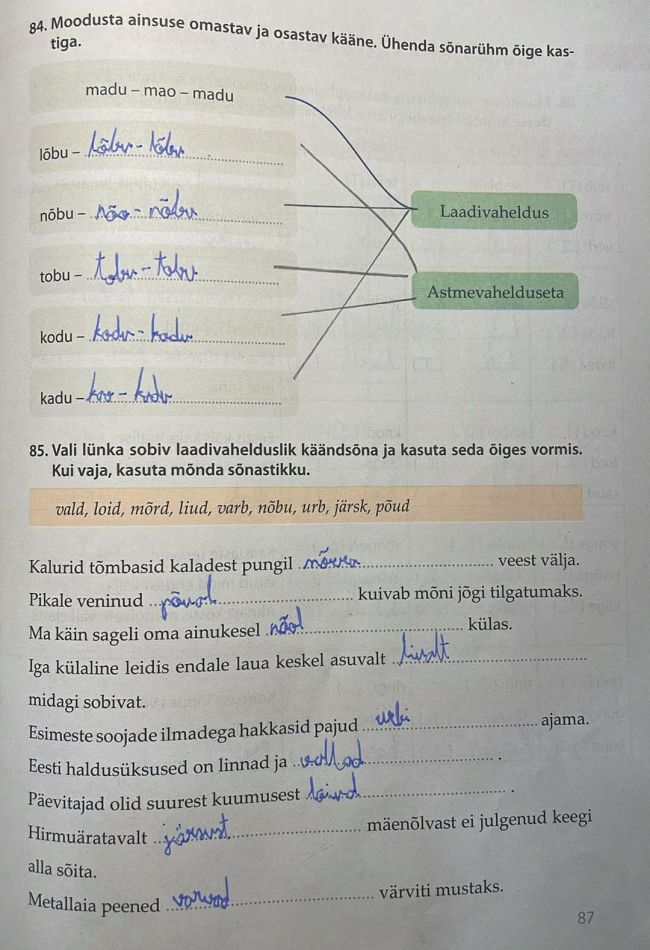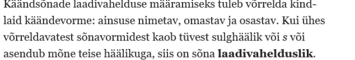Tutvusime Opiq.ee keskkonnas õpiku teemaga "Käändsõna laadivaheldus". Robin sai teada, et käändsõnade vältevahelduse kindlakstegemiseks tuleb võrrelda ainsuse nimetavat, omastavat ja osastavat käänet ning kui nendes vormides vahelduvad II ja III välde, on sõna vältevahelduslik. Ta õppis, et vältevaheldus võib ilmneda ka kirjapildis, liidetes ja võõrsõnades, eriti siis, kui pearõhk on järgsilbil, ning et laadivahelduslike sõnade vältemuutust ei peeta vältevahelduseks. Samuti sai ta teada, et III vältes sõnavorm on tugevas astmes ja II vältes sõnavorm nõrgas astmes ning et vältevahelduslikkust ja välteid saab kontrollida ÕS-ist, kus vastavad vormid on selgelt märgitud.