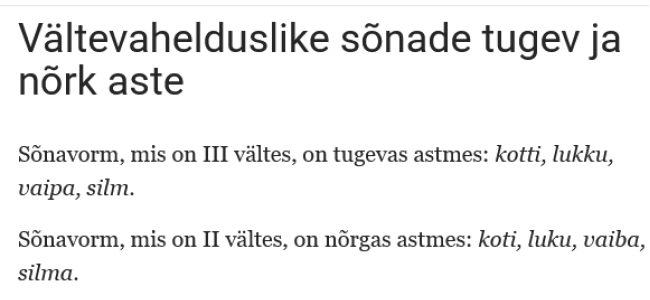 Tutvusime Opiq.ee keskkonnas õpiku teemaga "Käändsõna vältevaheldus". Robin sai teada, et vältevaheldus tähendab sõna häälduse muutumist erinevates käändevormides. Selle kindlakstegemiseks võrreldakse ainsuse nimetavat, omastavat ja osastavat käänet. Kui sõnas vahelduvad II ja III välde, on tegu vältevaheldusliku sõnaga. Samuti õppis ta, et III välde on tugev aste ja II välde nõrk aste ning vajaduse korral saab sõna välteid kontrollida ÕS-ist.