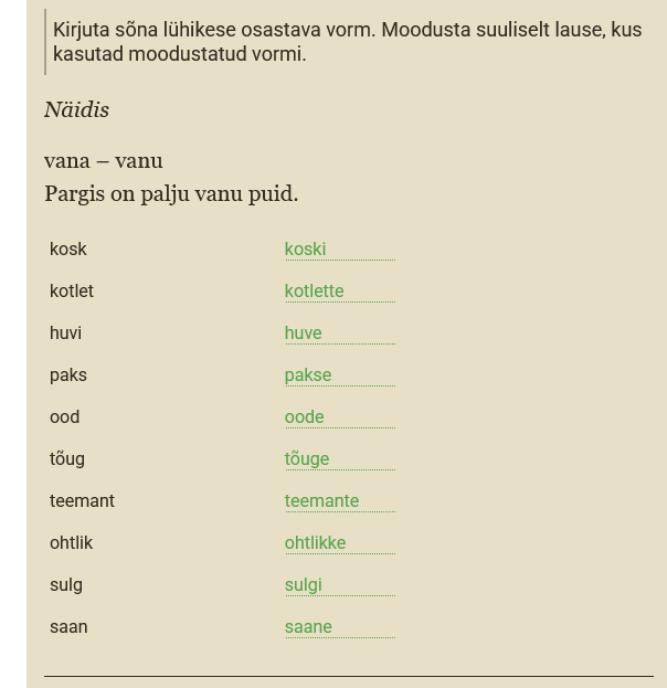 Kui ainsuse osastava lõpus on i, tuleb mitmuse osastava lõppu e.