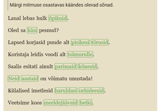 Kui ainsuse osastava lõpus on e, tuleb mitmuse osastava lõppu i.