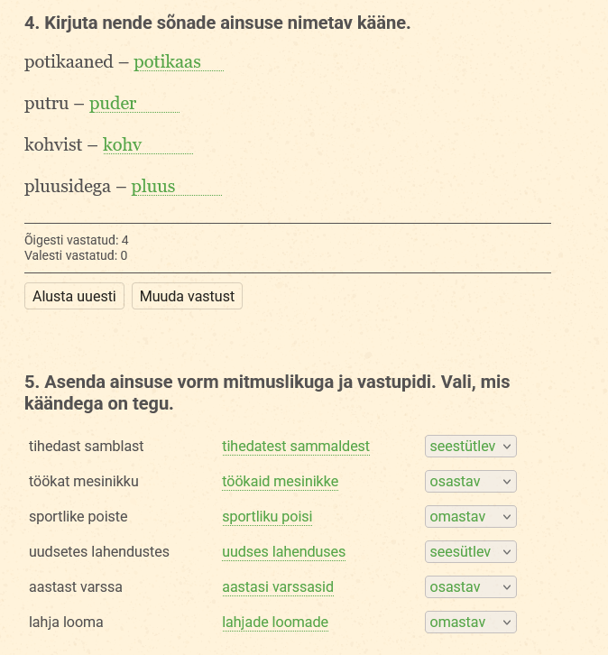 Robin harjutas kontrolltööks läbi opiq.ee ülesannete.