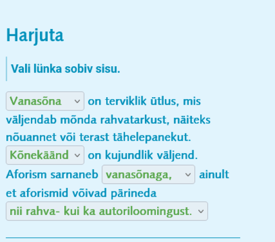 Tutvusime õpiku teemaga „5.4. Ütlusfolkloor“ ja õppisime teema läbi Opiq.ee keskkonna, kus arutlesime antud teema läbi. Robin lahendas ka vastavad harjutused. Ta sai teada, et ütlusfolkloor kuulub rahvaluule lühivormide hulka ja hõlmab vanasõnu, kõnekäände ning aforisme, millel pole kindlat autorit, et osa ütlusi peegeldab usku sõna maagilisse jõusse, teised on kasutusel nalja või väljendusrikkuse pärast, ning et vanasõnad annavad õpetlikku elutarkust, kõnekäänud on kujundlikud väljendid ja aforismid lühikesed vaimukad mõtteterad, mis võivad olla nii rahva- kui autorilooming.