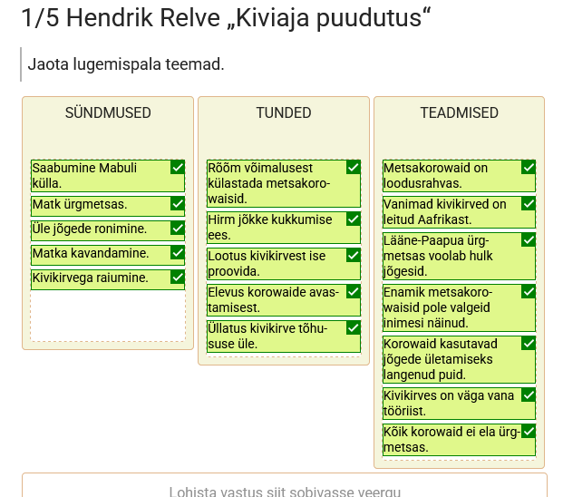 Tutvusime õpiku teemaga „7.2. Reisikiri“ ja õppisime teema läbi Opiq.ee keskkonna, kus arutlesime antud teema läbi. Robin lahendas ka vastavad harjutused, kus ta oskas hästi eristada koheselt sündmused, tunded ja teadmised. Ta sai teada, et reisikiri on tõsieluline jutustus rännakust, kus kirjeldatakse nähtud paiku ja inimesi ning jagatakse elamusi ja mõtteid, ning et reisilood võivad olla päeviku, mälestuse, seiklusjutu või teabeteksti moodi. Varem pole Robin ühtegi sellist raamatut lugenud ja nüüd kui oli võimalus lugeda lühikesi katkendeid reisikirjadest ei tundnud ta, et sooviks sellistel teemadel raamatut lugeda.