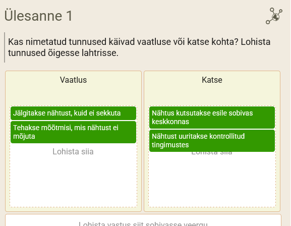Tutvusime Opiq.ee keskkonnas õpiku teemaga "1.4. Vaatlus ja katse". Robin sai teada, et vaatlus on nähtuse jälgimine ilma sekkumata, ehk lihtsalt vaadatakse ja mõõdetakse, mis toimub. Katse on aga nähtuse esilekutsumine sobivas keskkonnas (nt laboris), et seda paremini uurida ja segavaid tegureid vältida. Katsetes on tähtsad sõltumatu muutuja (see, mida teadlane muudab) ja sõltuv muutuja (see, mida muutus mõjutab), ning arvestada tuleb ka kõrvaltegureid, mis võivad tulemust mõjutada. Katseid tehakse sageli laboris, sest seal saab tingimusi kontrollida. Samuti õppis ta, et laboris tuleb järgida ohutusnõudeid, sest kasutatakse ohtlikke aineid ja seadmeid.